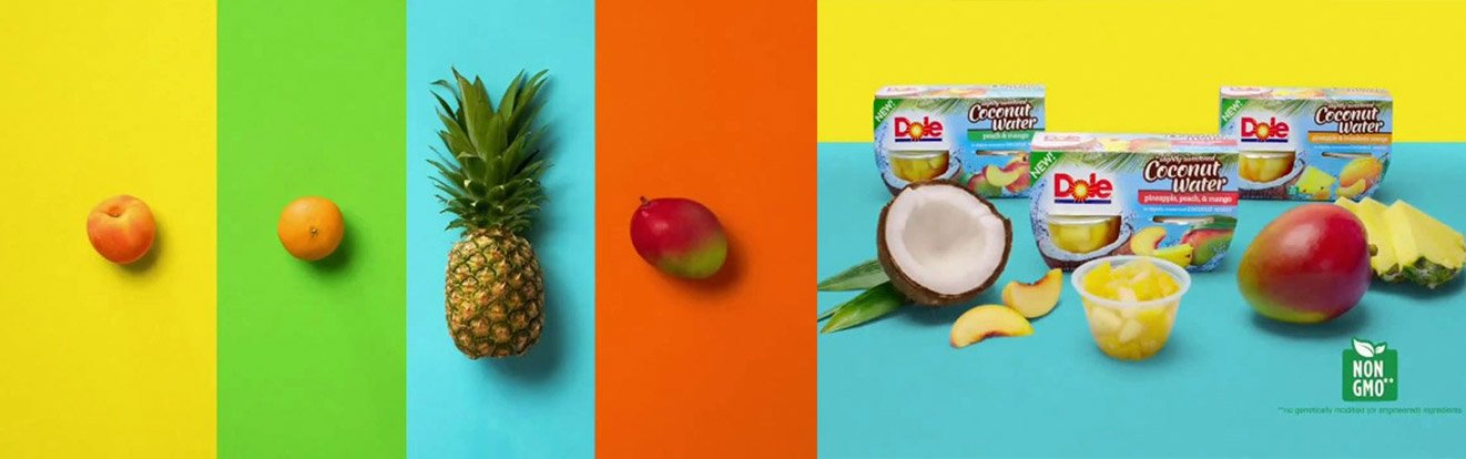 Commercial for Dole Fruit Bowls in sweetened coconut water.