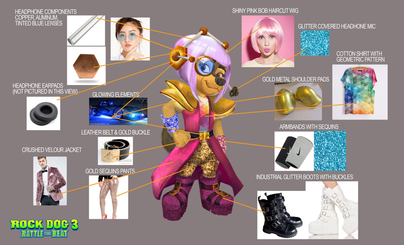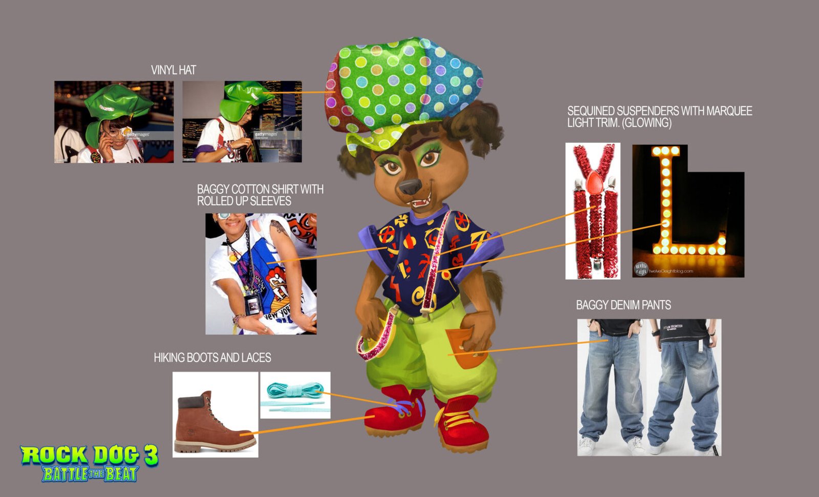 The fun continued on “Rock Dog 3 Battle of the Beat.”  I created character designs, character orthographics, costume designs, expression pages and phoneme sheets for the CG movie sequel.